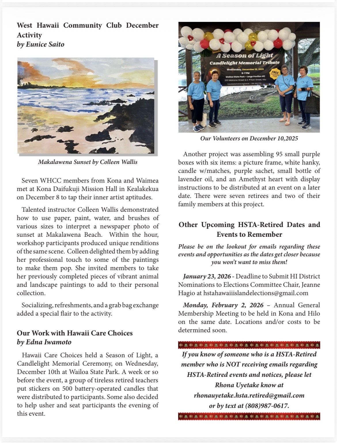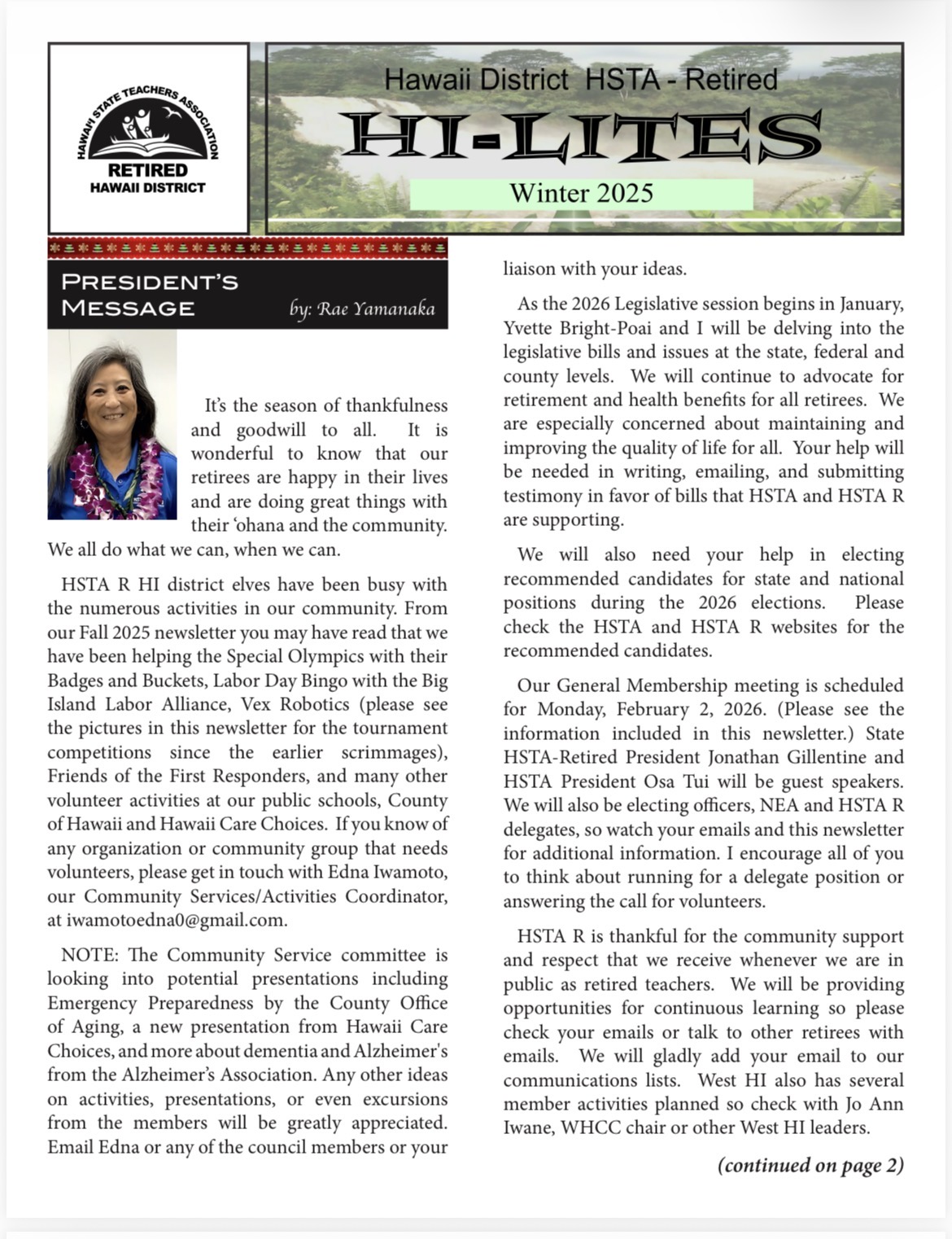 Hi-Lites Newsletter Hi-Lites Newsletter Click any page to print! HSTA-Retired strives to protect and improve the general welfare of its members and to support public education Hawaiʻi District Page State Home Page