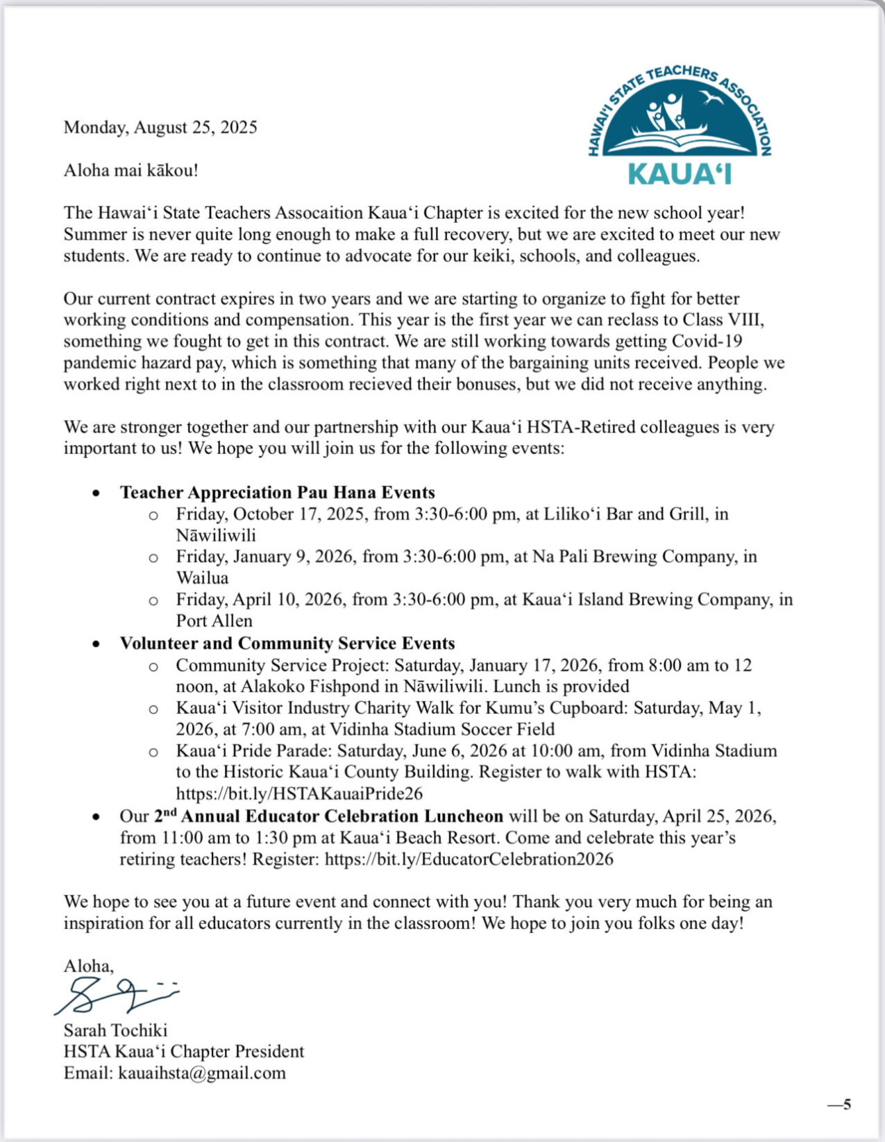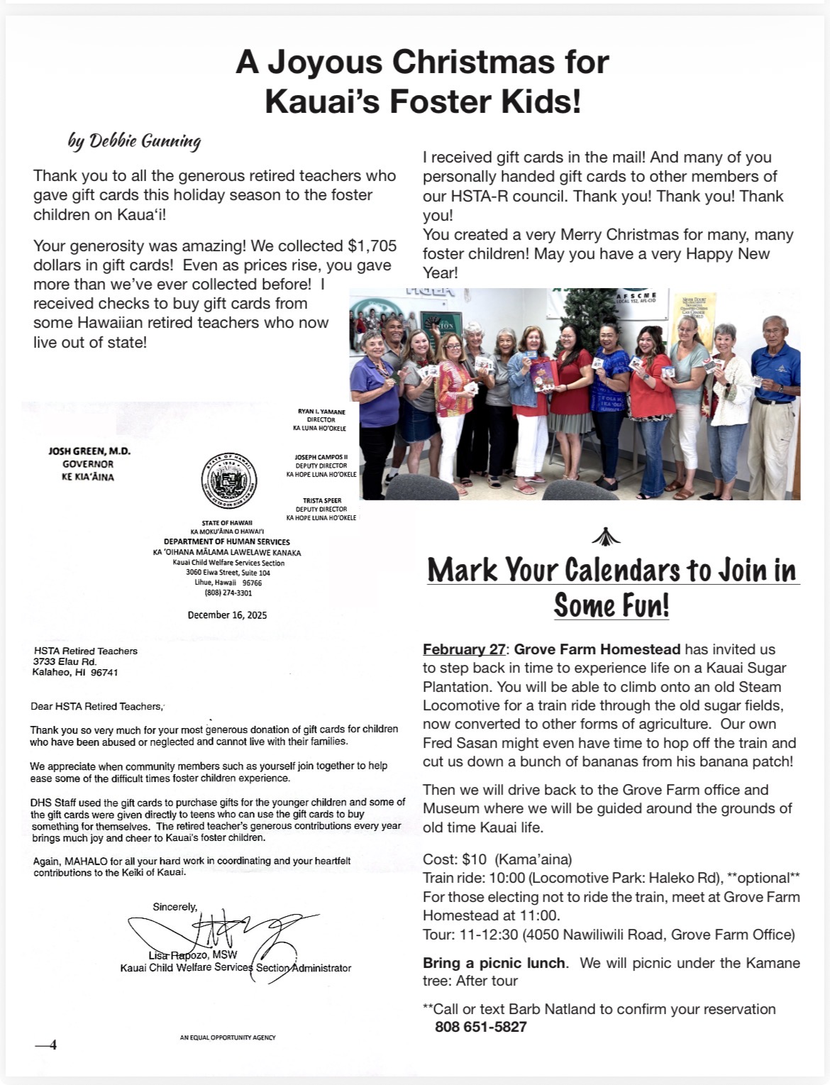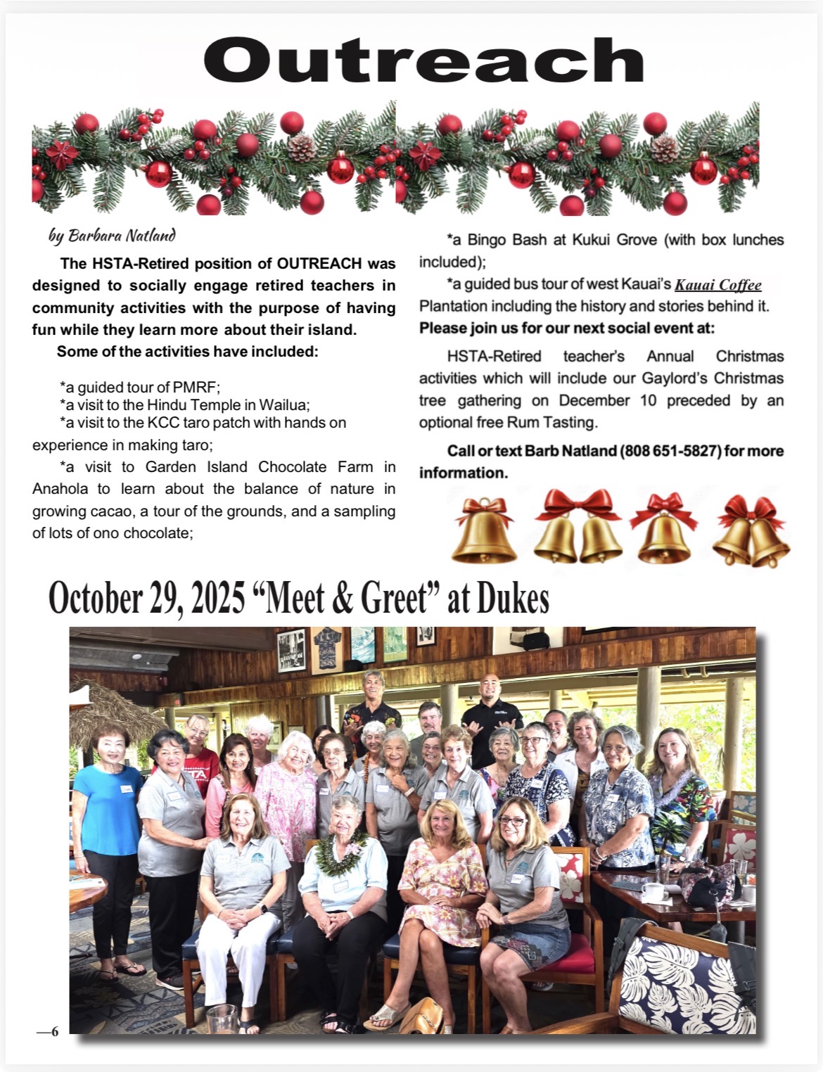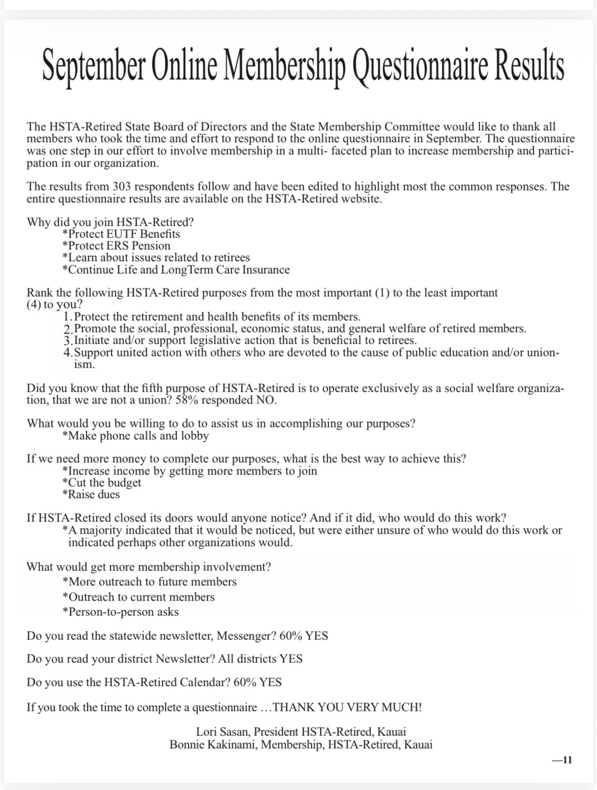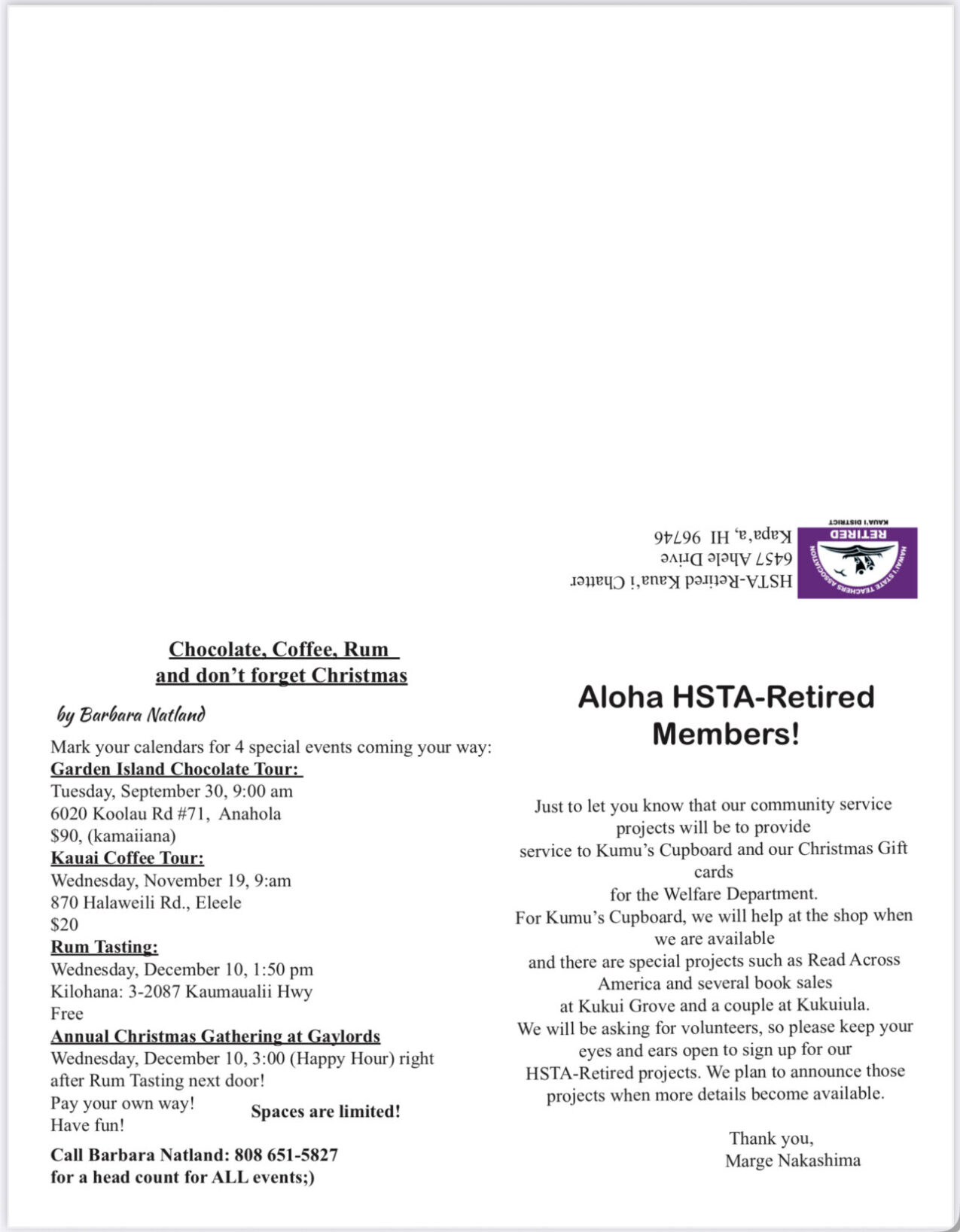 Chatter Archive Click any page to print HSTA-Retired strives to protect and improve the general welfare of its members and to support public education Kauaʻi District Page State Home Page