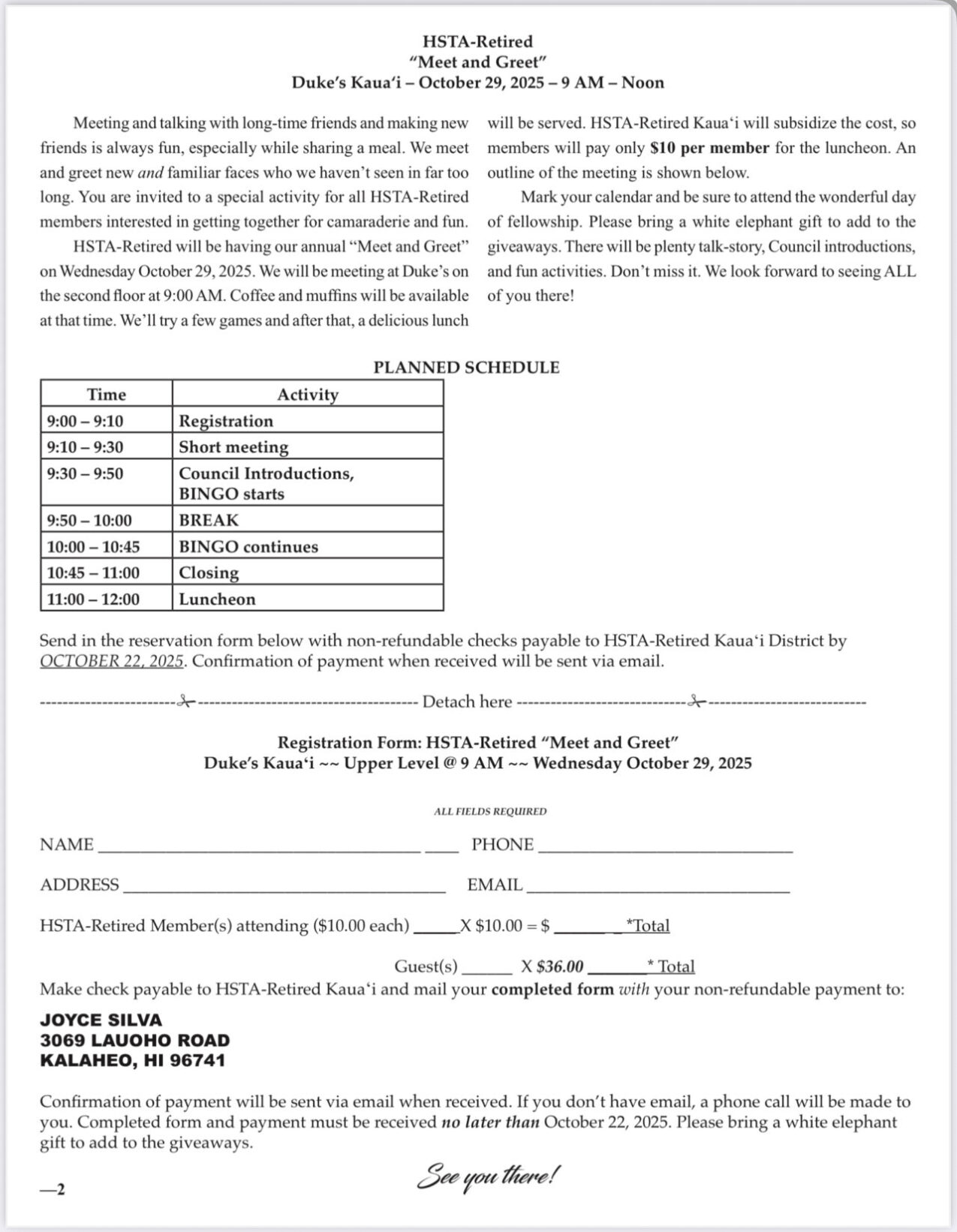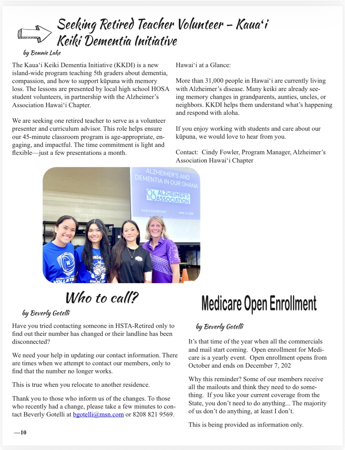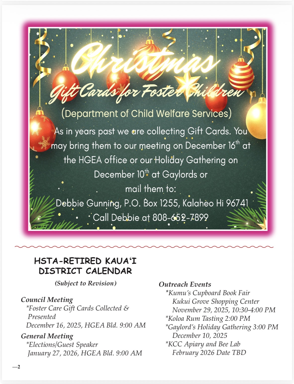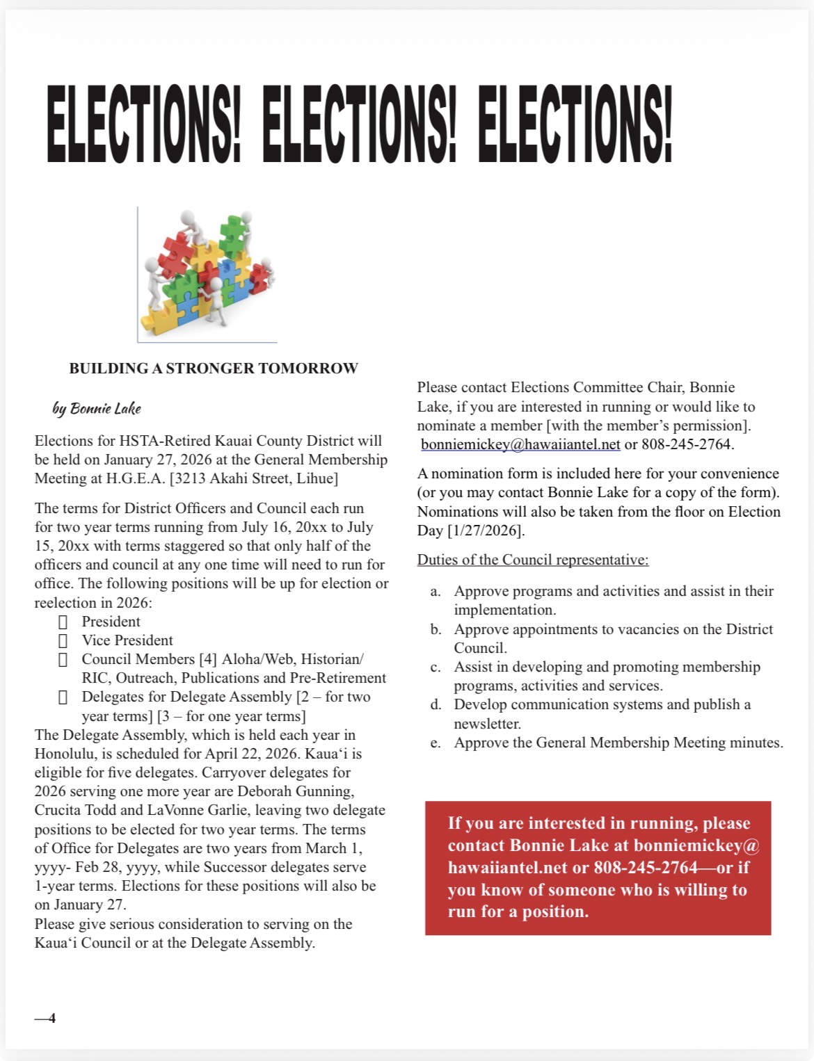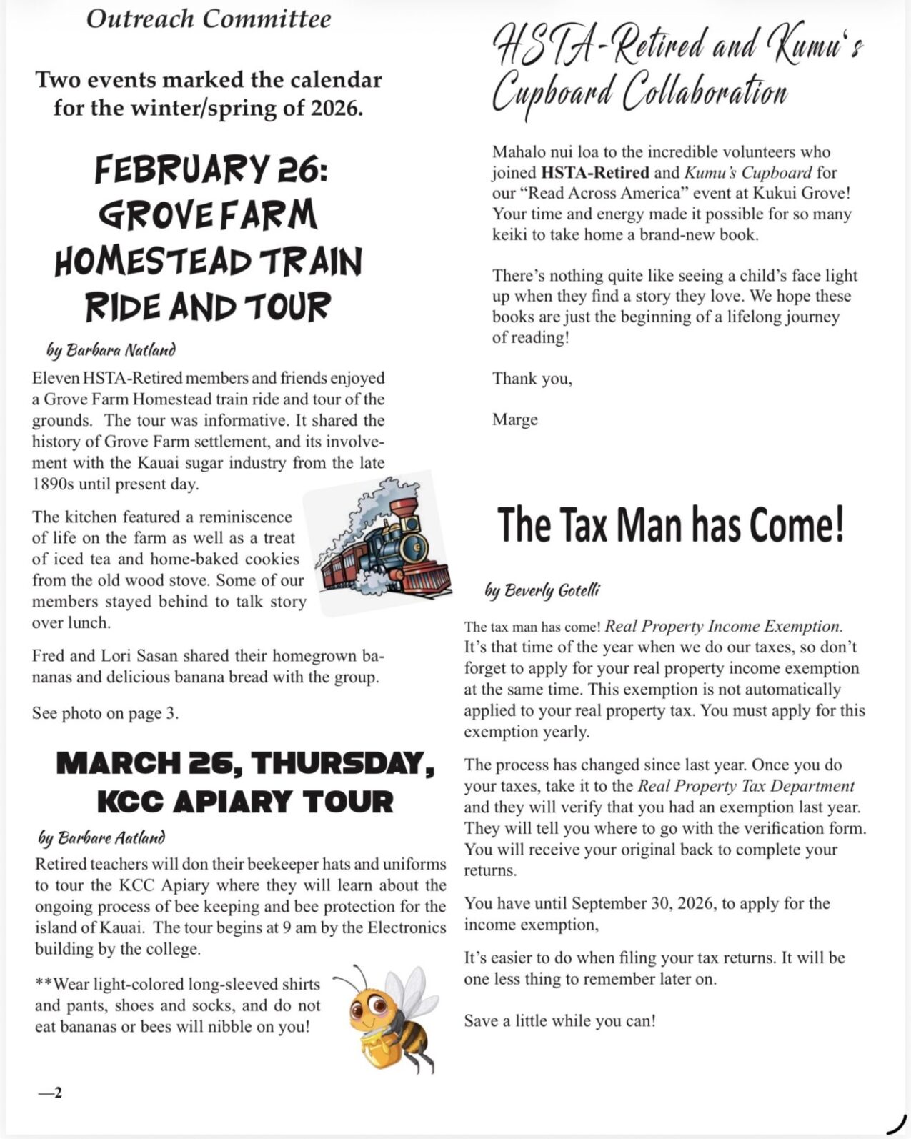Chatter Archive Click any page to print HSTA-Retired strives to protect and improve the general welfare of its members and to support public education Kauaʻi District Page State Home Page