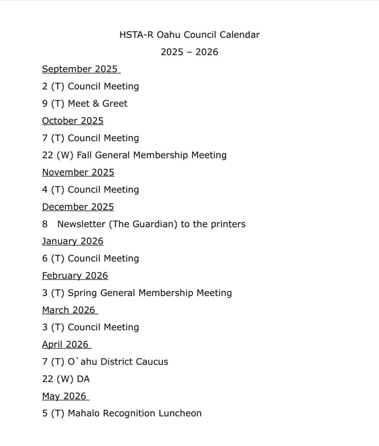 Calendar ~ O‘ahu Healthy ♥ Helpful ♥ Happy Stick a Pin! HSTA-Retired strives to protect and improve the general welfare of its members and to support public education. O‘ahu Home Page State Home Page